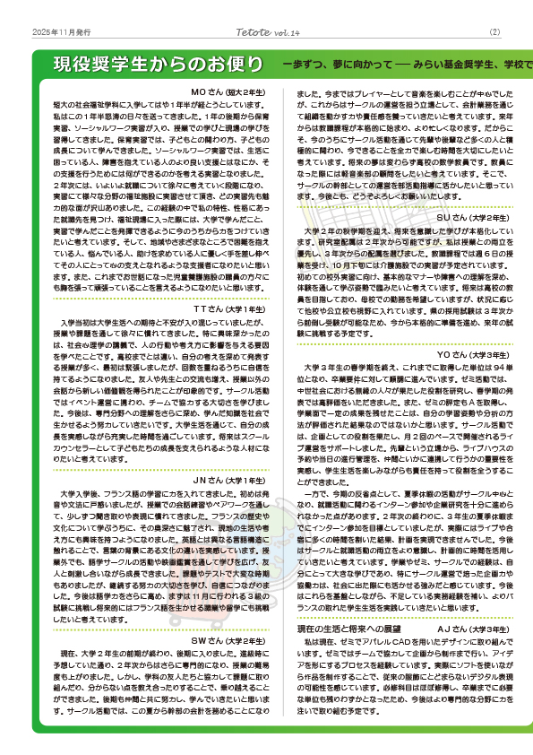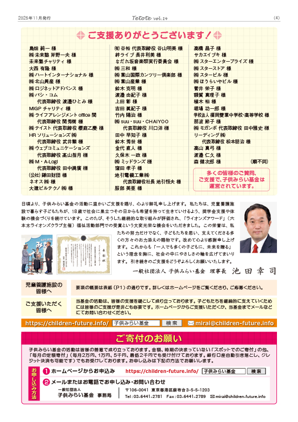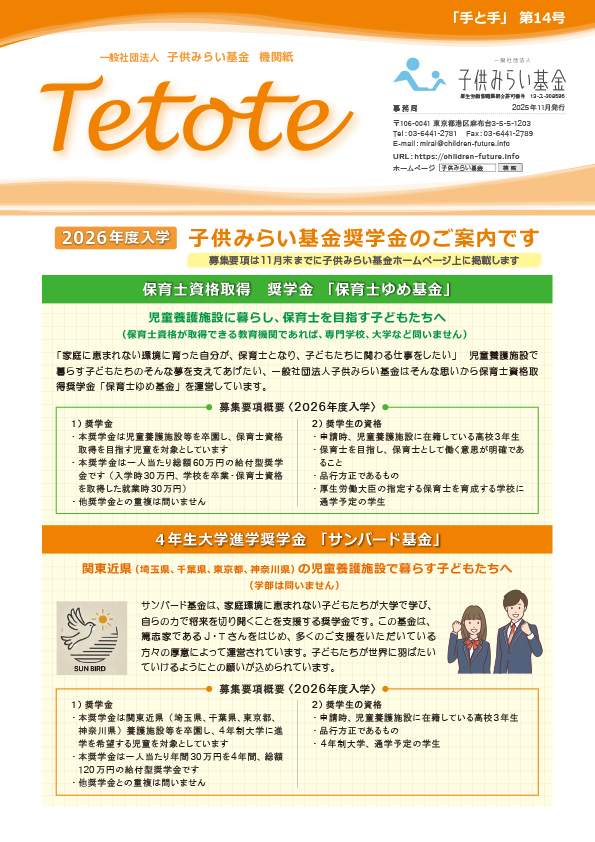 2025年11月子供みらい基金 機関紙「Tetote」 第14号